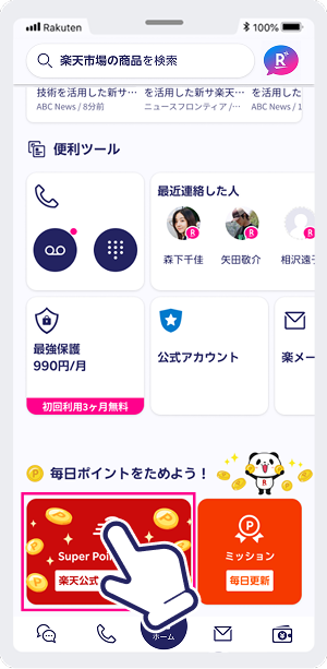 ※Rakuten Link内のSuper Point Screen機能が開かない場合Rakuten Linkアプリを最新のバージョンにアップデートしてください。