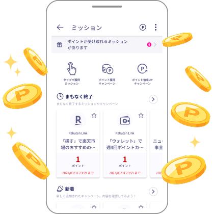※Rakuten Linkでご利用いただけるミッション機能が対象です。その他のアプリの機能は対象外です。