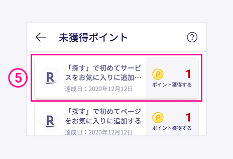 ⑤一覧から、獲得したい「未獲得ポイント」をタップ